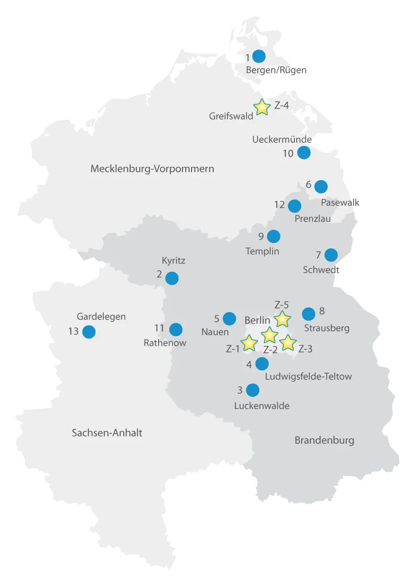 ANNOTeM is a large-scale project funded by the German Federal Joint Committee (Gemeinsamer Bundesausschuss G-BA) that brings together experts in the fields of neurology, telemedicine, and neuro-imaging manufacturers in cooperation with health insurance companies to improve emergency care in remote areas in northeastern Germany. The project is led by Professor Audebert, Medical Director of the Clinic for Neurology at the Campus Benjamin Franklin of the Charité Universitätsmedizin Berlin, and Professor Endres, Director of the Department of Neurology at the Charité Universitätsmedizin Berlin. Project members include centers with high-end neurological expertise and regional hospitals in less populated areas, mainly without their own neurological department (see Figure 1). Using a network station, neurologists from central hospitals are available around the clock to examine patients telemedically in remote clinics and to advise treating physicians without leaving their office.