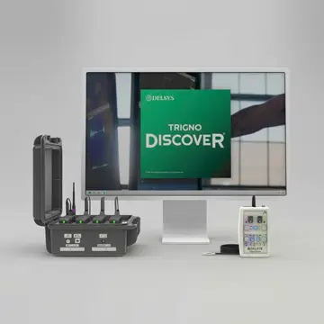 Wireless EMG system (Delsys) records muscle activity via wearable sensors, allowing free movement without cables.